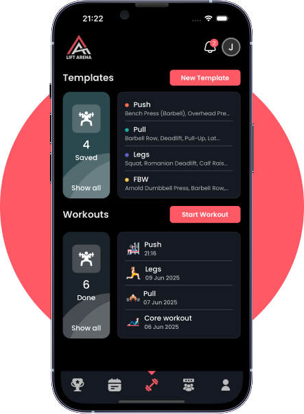 Lift Arena to platforma treningowa w formie gry, która zamienia Twoje ćwiczenia w wyzwania. Śledź postępy, zdobywaj punkty i motywuj się dzięki spersonalizowanym planom.
